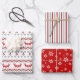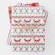 Dieses Set koordinierter Holiday Geschenkblätter weist Muster in leuchtend roten, aquamarinen und weißen Tönen auf. Ein Blatt hat rote Rentiere, Chevrons und Baumbulben gepaart mit aquamarinen blauen Schneeflocken. Ein anderes Papier hat abwechselnd aquamarine, weiße und rote Streifen. Und das dritte Papier ist rot mit weißen verzierten Schneeflocken. Eine farbenfrohe, helle und festliche Kombination. *Dank der AMB Illustrationen für die in diesem Set verwendeten Muster.