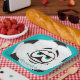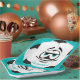 Personalisiert Soccer Ball Funny Face Party Tischgeschirr Set: Papier Teller aquamarin Schwarz-Weiß Fußball lustiges Gesicht.