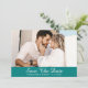 Elegantes aquamarines Hochzeitsszenario-Foto speichert die Datumskarten mit einem Verlobung-Foto und einem Drehbuch auf aquamarinem Hintergrund. Personalisierte aquamarine Hochzeit speichern Sie die Terminkarten. Aquamarine Hochzeiten können individuell angepasst werden. Script Hochzeit speichern Sie die Datumskarten.