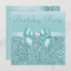 Elegante kundenspezifische aquamarine blaue Geburtstags-Party Einladungen der Frauen und der Mädchen mit einem schöner Türkis glittery Drucksequinsmuster, einem niedlichen glänzenden aquamarinen Druckbling Juwel des bogens und des Bandes und des hübschen digitalen Diamanten und blauem Text. Dieses noble bezaubernde girly lädt werden verziert beiden Seiten ein. Schöne, schicke, modische, moderne Einladungen. Merken Sie bitte: Alles lädt auf Zazzle haben Ebenedruckbilder ein. Text, Schriftart und Farbe des Schriftartes können alle besonders angefertigt werden. Wenn Sie die Unterstützung benötigen, die bitte Ihr Produkt besonders anfertigt, treten Sie mit mir durch meinen Speicher in Verbindung. Ich bin glücklich zu helfen.