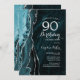 Aquamarine und silber agate 90. Geburtstagsfeier Einladung. Elegantes modernes Design mit türkisfarbenem Aquarell-Hintergrund aus Marmor, Imitate Glitzer Silber und Typografie Drehbuch Schriftart. Die trendige Einladungskarte eignet sich perfekt für eine stilvolle Damenfeier. Gedruckte Zazzle Einladungen oder Sofortdownload digitalen druckbaren Vorlage.