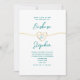 Einfache, elegante Kalligraphie-Schrift, minimalistisch aquamarine und weiße Hochzeitseinladung mit romantischem goldenen Seilherz und vollen Namen - Monogramm Rücken.