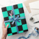 Aquamarines türkisfarbenes und schwarzes Schachbre Geschenkpapier
