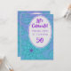 Es ist ein einzigartiges hübsches und lustiges Geburtstagsdesign, um einen Meilenstein des Lebens zu verkünden und zu feiern, nämlich den 50. Geburtstag. Das Textfeld ist ein weißes Oval mit einer Kulisse, die ein aquamarines, türkisblaues und plum lila Fraktal Blumenmuster abstrakte Kunstwerk ist, das ich erstellt habe. Es gibt zwei verschiedene Schriftart, die gut zusammenpassen und das ist ein perfektes Design für Künstler mit einem eklektischen Geschmack.