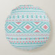 Aquamarines und rosa aztekisches Stammes- Muster Rundes Kissen