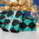 Es handelt sich um ein klassisches und dennoch einfaches Design aquamariner und schwarzer Diamantformen, die in einem Schachbrettmuster angeordnet sind.