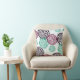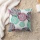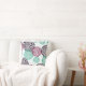Dieses Kopfkissen zeigt ein Kunstbild von Deko Mum Blumenbildern in lila, violetten und aquamarinen Blautönen. Das Muster wird auf einem cremefarbenen Hintergrund platziert und auf der Rückseite des Kissens wiederholt.