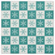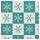 Aquamarine und weiße Schneeflocken wechseln sich auf karierten, weißen und blau-grünen Plätzen ab, um ein stilvolles geometrisches Muster zu schaffen, das sich perfekt für Weihnachten oder Winter eignet. Der Stoff ist mit Armbanduhr, Fettviertel und mit der Werft auf 7 Werkstofftypen in der Seitenleiste erhältlich.