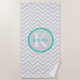 Lassen Sie sich mit einem Aquamarinen Zickzack Mongram Beach Handtuch von einem einzigartigen Geschenk für jeden Strandliebhaber verzaubern. Das Handtuchdesign weist ein hellgraues Zickzack Muster auf, mit einem im aquamarinen umrissenen Rundemblem und einem Bereich, der mit Ihrem Namen und Monogramm personalisiert werden kann. Weitere Artikel sind auch mit diesem Design erhältlich. Bitte kontaktieren Sie mich direkt für Hilfe bei der Personalisierung.