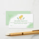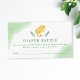 Machen Sie Ihre Babyparty mit dieser Windel-Tombola-Karte extra lustig, die Desteis niedliche Aquarell-Illustration eines gelben Babykükens und zwei grüner Blätterzweige zeigt. An den Rändern befinden sich subtile Aquarell-Lasuren, die ein schönes dekoratives Detail hinzufügen. Die andere Seite der Karte hat eine hellgrüne Hintergrundfarbe.