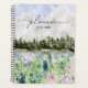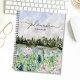Mit unserem Watercolor Blue Lila Blume Meadow on Mountain Planner! Bleibe in Stil mit diesem ruhigen botanischen Design organisiert.