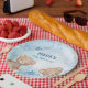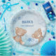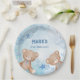 Blaue niedliche Wasserfarbe Geburtstagslinie mit Bären. Bearbeitbarer Name, Adresse und Alter.