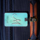 Jedes Gepäck benötigt einen schönen Umbau! Eleganter und einzigartiger mit Monogramm Anfangsbuchstabe in zwei Tönen. Hintergrund-Aquarell in den Blauen/Grün-/Aqua-Türkisfarben. Editable Schablonenumbauten - addieren Sie Monogramm.