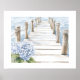 Aquarell Blue Hydrangea Seaside Dock Coastal Poster