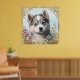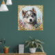 Aquarell-Blume und sibirische Husky-Welpe Poster
