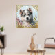Wunderschönes Watercolor Sibirisches Husky-Design mit gelben, roten und weißen Blume und Vintagem Goldrahmen