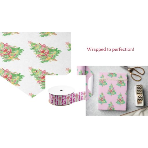 Aquarell Bright Colors Coquette Weihnachtsbaum Geschenkpapier