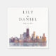 Diese eleganten Aquarell-Chicago-Hochzeitspapier-Servietten können mit Ihren Informationen in moderner Typografie personalisiert werden. Entworfen von Thisisnotme©