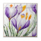 Das Watercolor Crocus Nouveau Keramik Tile ist ein bezauberndes und zartes Kunstwerk, das das Wesen der Aquarellmalerei und den anmutigen Charme der Krokus-Blume wunderbar verbindet. Diese Keramik-Kachel erfasst die ätherische Schönheit und den Bio Fluss von Wasserfarben und bringt ein Gefühl der Ruhe und der Natur in jeden Raum. Im Zentrum der Kachel befindet sich eine pulsierende Crocus Blume, die die Bühne des Zentrums beherrscht. Das Krokus blüht mit sanften und transparenten Wasserfarbenstrichen in sanften Lavendeltönen, Lilien und weichen Falten. Die Blütenblätter scheinen zum Leben zu erwecken, was ein Gefühl von Bewegung und Gnade hervorruft, als ob sie sanft in einer Frühjahrsbrise schweben würden. Die Aquarelltechnik zur Darstellung des Krokus verleiht der Blume eine fast traumhafte Qualität, als wäre es ein flüchtiger Moment, der auf der Leinwand der Keramik eingefangen wurde. Die Farben verschmelzen nahtlos, schaffen ein Gefühl von Tiefe und Dimension und verleihen der Gesamtkomposition eine sanfte und feine Atmosphäre.