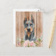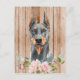 Realistische Doberman Hund Aquarellbilder mit hübschem Blumenspray auf Imitaten Holzpaneelhintergrund.