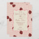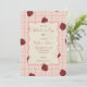 Aquarell-Erdbeeren auf rosa Raster - Valentinstag Einladung