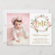 Dieser bezaubernde Geburtstag eines Fotos lädt mit zarten Aquarellfarben-Blume in Rosa und stilvoller Typografie in Imitaten mit Goldfolie ein und liest "One". Leicht für die erste Geburtstagsparty Ihrer kleinen Prinzessin, besonders wenn Sie mit einem hübschen, blumigen, goldenen Thema gehen! Ersetzen Sie einfach das Foto durch eines Ihrer eigenen und passen Sie den Text an!