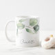 Eukalyptus-Watercolor-Grünzeug-Kaffeetasse, die Sie leicht für Ihre Freunde und Familie anpassen können. Mit Aquarell-Grünzeug-Blättern, Schrift und moderner Typografie.