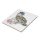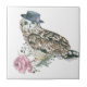 Dieses Ausrüstungsbeschreibungen ein Watercolorporträt einer Eule, die in einem Hut und in rosa Rosen aufwirft.
