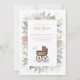 Das Design umfasst eine floralfarbene, schicke bohenhafte Vegetation, ein Vintages Girl, eine Vintage, altmodische Babywagen, einen klassisch eleganten traditionellen Platz, eine minimalistische blaue Rose botanisch, eine Babydusche-Registrierkasse, niedliche Einladungen für eine Babydusche, eine Babydusche, eine Babywanne, eine braune Vintage Babydusche-Dusche mit Geschenk-Registrierung und QR Code für Facebook Event Seite URL Link für Website, Online-Web-Adresse.