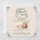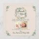 Schicken Sie diese wunderschöne Aquarell-Blumenkarte an Ihre Freunde und Familie, für das niedliche Geschenk, das Sie bei Ihrer Babydusche bekommen haben. Sie können die Karte personalisieren, indem Sie das Babybild, die Statistiken und die Namen für diese besondere Touch hinzufügen.