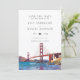 Diese elegante Save-the-Date-Hochzeitskarte für die Golden Gate Bridge in San Francisco kann mit Ihren Informationen in moderner Typografie und einem besonderen Foto auf der Rückseite personalisiert werden. Entworfen von Thisisnotme©