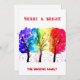 Frohe und helle Weihnachtskarte. Weihnachtsbaum in Aquarellfarbe, traditionelle Karte. Bitte personalisieren Sie es mit Ihren Daten.