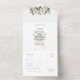 Aquarell-Grün mit weißen Rosen Hochzeit RSVP-Karte All In One Einladung