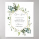 Dieses Hochzeitsschild (Poster) zeigt lackierte Aquarelltöne, grüne Blätter mit einem Imitat Gold Hexagon Rahmen. Klicken Sie auf die SCHALTFLÄCHE BLAUE DESIGN TOOL, um eine erweiterte Anpassung dieses Designs zu erhalten. Matching-Elemente sind ebenfalls verfügbar.