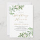 Aquarell Grünpflanzen und Blume Polterabend Einladung | Laden Sie Familie und Freunde zu Ihrem Polterabend mit dieser anpassbaren Einladung ein. Es zeigt Aquarellbilder und Muster von Blattwerk und weißen Blume. Diese blumengeschmückte Einladung eignet sich ideal für Frühjahr- und Hochzeitsduschen im Garten.