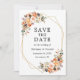 Die moderne Elegant Watercolor Floral Save the Date Hochzeitsankündigungskarte beinhaltet wunderschöne HerbstBlume auf einem geometrischen Rahmen. Orangefarbene Rose, pfirsichfarbene Rose, goldene Rose, rosa Rosen, pflaumenfarbene Sukkulente, weiße Rosen, Eukalyptus-Blätter und andere botanische Pflanzen. Terracotta Back.