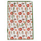 Weihnachtsgeschenk-Tasche mit einem Wasserfarbe Schnee-Thema - Ski Pullover, Skischuhe, Winterhütten und Fäustchen in Aquarellfarben Grüntöne und Rot und zarte Schneeflocken wiederholt sich durch Muster. Ein solider grüner Hintergrund, der der Abbildung entspricht.