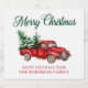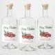 Aquarell Klassischer roter LKW Frohe Weihnachten Alkoholflaschenetikett