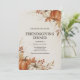Lade deine Freunde ein, die Saison mit dieser eleganten Einladung zum Friendsgiving-Dinner zu feiern. Diese zeigt wunderschöne, rustikale Wasserfarbillustrationen von Herbstkürbissen, Herbstlaub und Beeren auf einem warmen, neutralen Hintergrund. Dieses Design fängt perfekt die gemütliche, dankbare Stimmung der Jahreszeit ein. Passe Datum, Uhrzeit, Ort und Details für deine besondere Zusammenkunft an. Perfekt für eine zwanglose oder halboffizielle Herbstfeier mit deinen engsten Freunden!