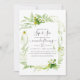 Die Grünpflanzen schmücken und sehen Sie die Einladung mit Farnen, Wildblumen und Erdbeeren und einem schlüpfen grünen Aquarellspülhintergrund.