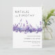 Elegante lila Lavendel-Hochzeitseinladungen. Unsere rustikalen Vintage- und Boho-Designs enthalten Aquarell-Wildblumen mit silbernen Akzenten und einfacher Kalligrafie für eine klassische Frühlings- oder Sommerhochzeit.