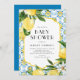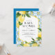 Lemon Thema Baby Dusche Einladung mit Aquarellbildern von Zitronen, Zitronenblüten und mediterranen Fliesen Muster. Personalisieren Sie diese durch Hinzufügen von Namen, Datum, Uhrzeit und anderen Details. Diese Zitronendusche ist ideal für Sommerhochzeiten und mediterrane Babyduschen.