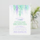 Loose Rebsorten Blume botanische Aquarellmalerei Kunst Vertikale Abend Hochzeitsempfang Einladungen. Schöne Blumenkunst lockere Aquarellkunst Design ideal für einen Abend Hochzeitsfeier in hübschen Blautönen, lila und grün. © Original watercolor art and design by Sarah Trett www.sarahtrett.com for www.mylittleedenweddings.com