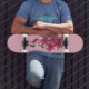 ein dekoratives Aquarelldesign auf einem Skateboard