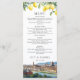 Diese eleganten Hochzeitsmenüs mit Aquarell-Limonen und einer Szene aus Florenz können mit Ihren Informationen in moderner Typografie personalisiert werden. Entworfen von Thisisnotme©
