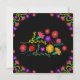 Aquarell mexikanische Blume Fiesta Design mit hellgelben, lila und rosa Blume und grünen Blätter auf einem schwarzen Hintergrund.