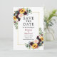 Die elegante Watercolor Mixed Floral Save the Date Verlobung Wedding Announcement Card beinhaltet bordeauxrote Rose, rosa Rosen, rote Rosen, Blumen, Sonnenblumen und botanisches Grün auf einem goldenen Rahmen.