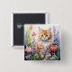 Aquarell Orange Tabby Kitty Cat Im Blumengarten Button