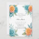 Aquarell Orange & Teal Rosen Brunch und Sektfrühst Einladung