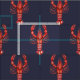 Gemustertes Gewebe Louisianawatercolor Cajun Panzerkrebse mit einem dunklen Marineblau färbte Hintergrund.